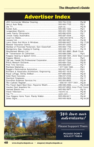 40 www.shepherdsguide.ca • niagara@shepherdsguide.ca