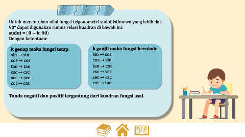 90° dapat digunakan rumus relasi kuadran di bawah ini: