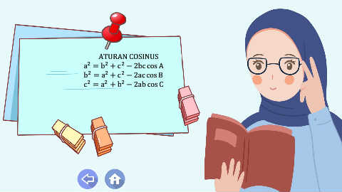 ATURAN COSINUS 2 2 2 a = b + c − 2bc cos A 2 2 2 b = a + c − 2ac cos B 2 2 2 c = a + b − 2ab cos C