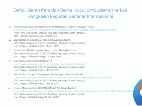 Daftar Siaran Pers dan Berita Kabar Ombudsman terkait
