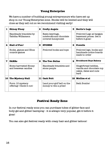 We have a number of budding young entrepreneurs who have set up shop in our Young Enterprise zone. Stocks will be limited and they will close as they sell out so we recommend visiting early!