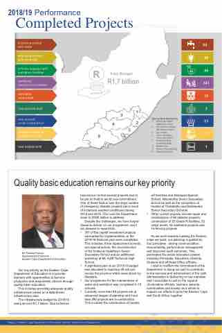 atThembisa and Khanyisa Special School, Ntsonkotha Senior Secondary School as well as the completion of hostels at Thubalethu and Dalindyebo Senior Secondary Schools.