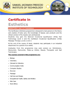 The Certificate in Esthetics programme is designed to train persons in the theory