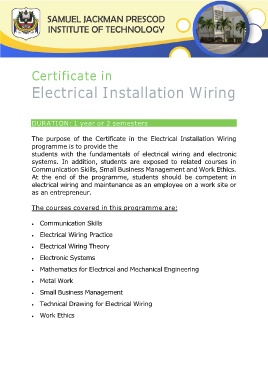 • Certificate in Electrical installation Wiring – 1 Year or 2