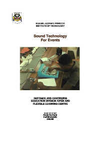SAMUEL JACKMAN PRESCOD INSTITUTE OF TECHNOLOGY Live Sound Engineering DISTANCE AND CONTINUING EDUCATION DIVISION /OPEN AND FLEXIBLE LEARNING CENTRE MODE OF STUDY FACE-TO-FACE