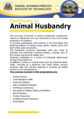The core areas covered are livestock husbandry, crop husbandry