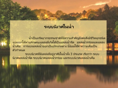 ระบบนิเวศทีมีแหล่งทีอยู่อาศัยในน าทัง 3 ประเภท เรียกว่า ระบบ