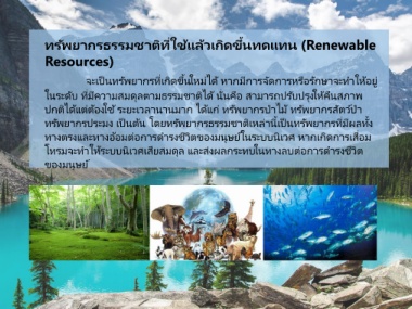 จะเป็นทรัพยากรทีเกิดขึนใหม่ได้ หากมีการจัดการหรือรักษาจะท าให้อยู่