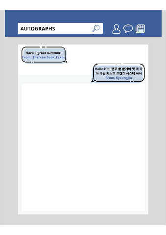 AUTOGRAPHS Have a great summer! From: The Yearbook Team Hello hihi 땡쿠 폴 플레이 윗 미 하 하 아임 베스트 프렌즈 시스터 하하 From: KyeongJin