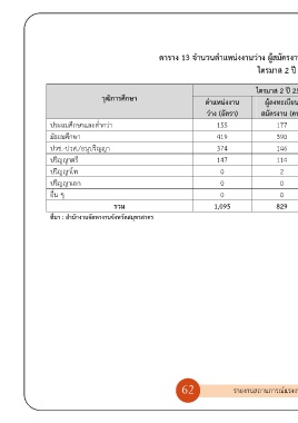 ตาราง 13 จํานวนตําแหนงงานวาง ผูสมัครงาน และการบรรจุงาน จําแนกตามวุฒิการศึกษา