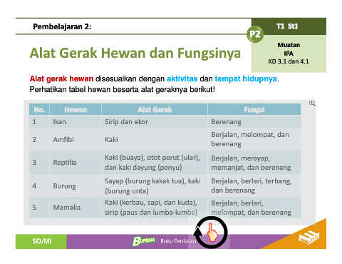 Perhatikan tabel hewan beserta alat geraknya berikut!