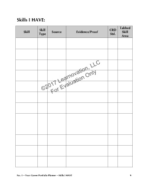 Skills I HAVE: Tabbed Skill CRD Skill Source Evidence/Proof Skill Type Std. Area ©2017 Learnovation, LLC For Evaluation Only No. 1 – Your Career Portfolio Planner – Skills I HAVE 9