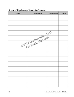 Science/ Psychology/ Analysis Courses: Course Description Competencies Project? ©2017 Learnovation, LLC For Evaluation Only 22 Career Portfolio Workbook for Dietitians