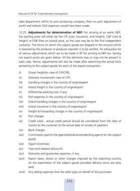 12.25. Adjustments for determination of NEP: For arriving at ex works NEP,
