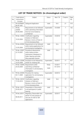 S. Trade Notice/ Subject Status New T.N Chapters Page