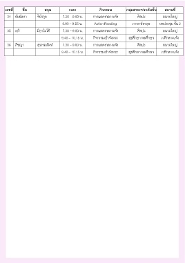 เลขที่ ชื่อ สกุล เวลา กิจกรรม กลุ่มสาระฯ/ระดับชั้น สถานที่