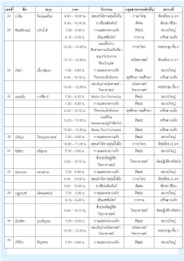 เลขที่ ชื่อ สกุล เวลา กิจกรรม กลุ่มสาระฯ/ระดับชั้น สถานที่