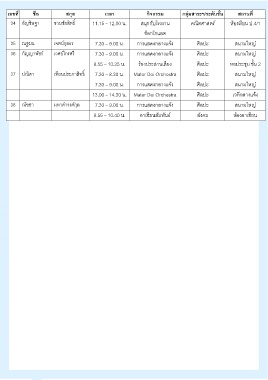 เลขที่ ชื่อ สกุล เวลา กิจกรรม กลุ่มสาระฯ/ระดับชั้น สถานที่