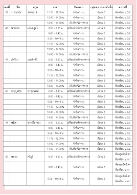 39 วรรณวนัช วิเศษชาติ 11.15 – 12.00 น. จัดกิจกรรม มัธยม 5 ห้องเรียน ป.3/2