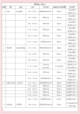 เลขที่ ชื่อ สกุล เวลา กิจกรรม กลุ่มสาระฯ/ระดับชั้น สถานที่