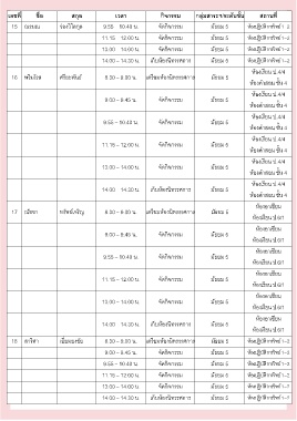 เลขที่ ชื่อ สกุล เวลา กิจกรรม กลุ่มสาระฯ/ระดับชั้น สถานที่
