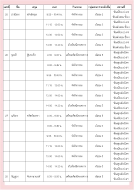 เลขที่ ชื่อ สกุล เวลา กิจกรรม กลุ่มสาระฯ/ระดับชั้น สถานที่