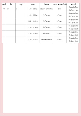 เลขที่ ชื่อ สกุล เวลา กิจกรรม กลุ่มสาระฯ/ระดับชั้น สถานที่