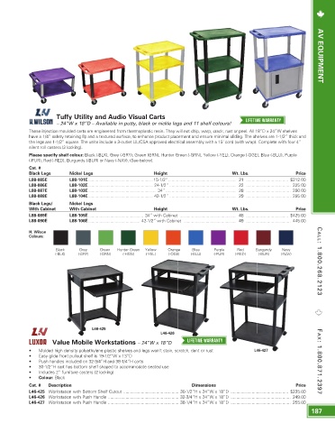 tuffy utility and audio visual Carts LIFetIMe warranty av equipment