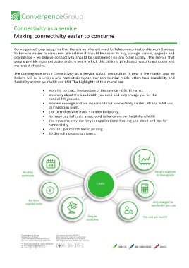 The Convergence Group Connectivity as a Service (CAAS) proposition is new to the market and we