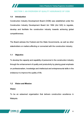 SECTION 1: AN OVERVIEW OF QUALITY ASSURANCE OF CIDB