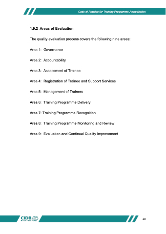 Area 8: Training Programme Monitoring and Review Area 9: Evaluation and Continual Quality Improvement