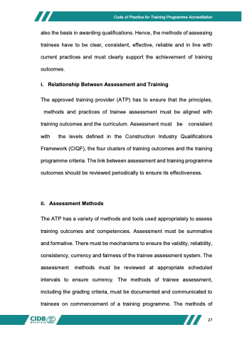 also the basis in awarding qualifications. Hence, the methods of assessing trainees have to be clear, consistent, effective, reliable and in line with current practices and must clearly support the achievement of training outcomes.