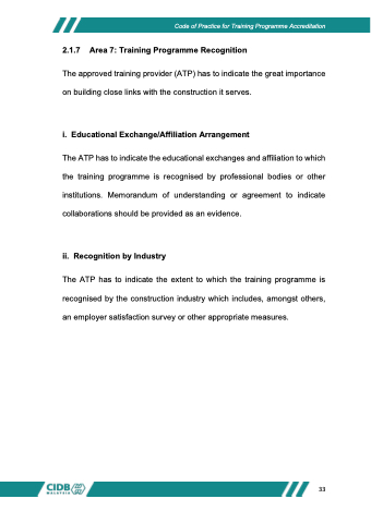 The ATP has to indicate the extent to which the training programme is recognised by the construction industry which includes, amongst others, an employer satisfaction survey or other appropriate measures.
