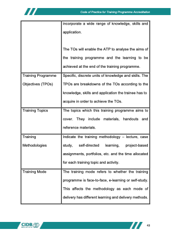 The TOs will enable the ATP to analyse the aims of the training programme and the learning to be achieved at the end of the training programme.