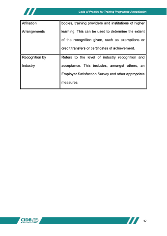 Refers to the level of industry recognition and acceptance. This includes, amongst others, an Employer Satisfaction Survey and other appropriate measures.