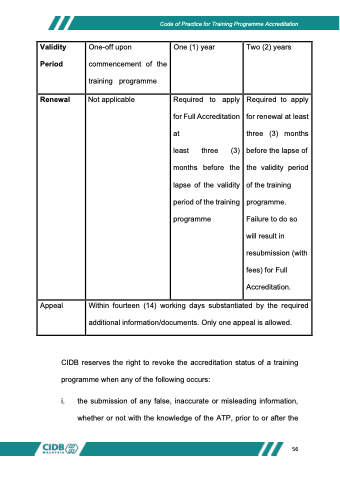 CIDB reserves the right to revoke the accreditation status of a training programme when any of the following occurs: