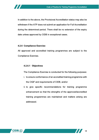 In addition to the above, the Provisional Accreditation status may also be withdrawn if the ATP does not submit an application for Full Accreditation during the determined period. There shall be no extension of the expiry date unless approved by CIDB in exceptional cases.