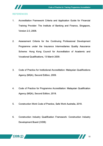 4. Code of Practice for Programme Accreditation: Malaysian Qualification Agency (MQA), Second Edition, 2018.