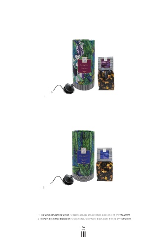 2 Tea Gift Set Citrus Explosion 70 grams tea, tea infuser black. Size: ø 8 x 16 cm 100.20.01 a tea infuser. Of course, the packaging and the tea infuser are colour coordinated.