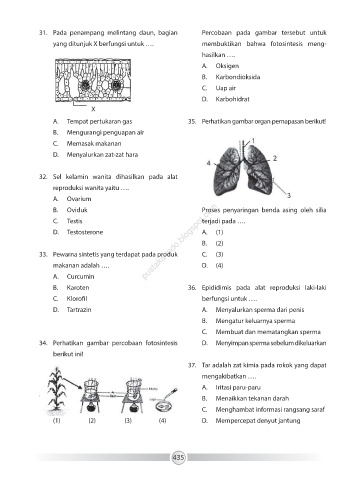 34. Perhatikan gambar percobaan fotosintesis D. Menyimpan sperma sebelum dikeluarkan