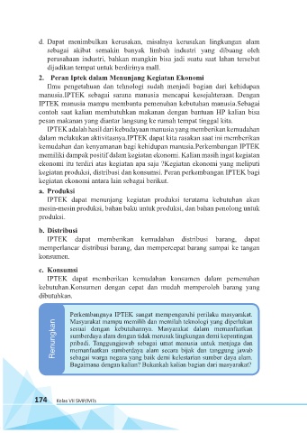 kegiatan produksi, distribusi dan konsumsi. Peran perkembangan IPTEK bagi
