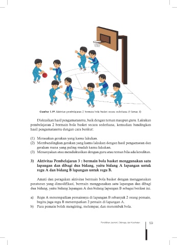 Gambar 1.59 Aktivitas pembelajaran 2 bermain bola basket secara sederhana (5 lawan 4)