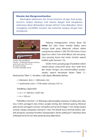 Perhatikan Gambar 1.16. Beberapa alat pengukur panjang, misalnya pita ukur