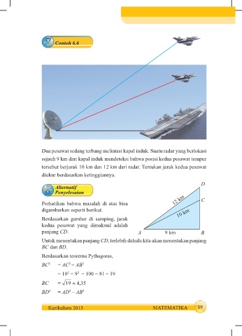 tersebut berjarak 10 km dan 12 km dari radar. Tentukan jarak kedua pesawat