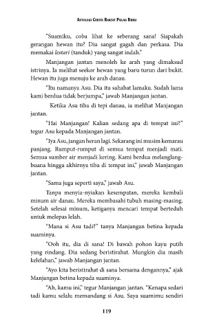 “Mana si Asu tadi?” tanya Manjangan betina kepada