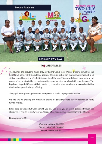 heights we achieved this academic session. This is an indication that we have imbibed in us