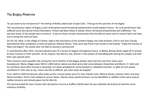 ‘So you want to be missionaries?’ the bishop of Belley asked Jean-Claude Colin. ‘Then go to the parishes of the Bugey.’