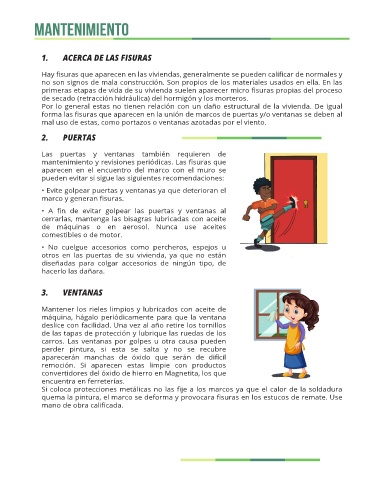• Evite golpear puertas y ventanas ya que deterioran el