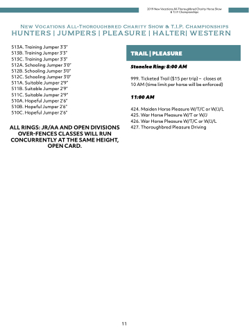 New Vocations All-Thoroughbred Charity Show & T.I.P. Championships HUNTERS | JUMPERS | PLEASURE | HALTER| WESTERN