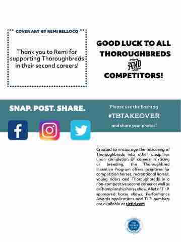 Created to encourage the retraining of Thoroughbreds into other disciplines upon completion of careers in racing or breeding, the Thoroughbred Incentive Program offers incentives for competition horses, recreational horses, young riders and Thoroughbreds in a non-competitive second career as well as a Championship horse show. A list of T.I.P. sponsored horse shows, Performance Awards applications and T.I.P. numbers are available at tjctip.com
